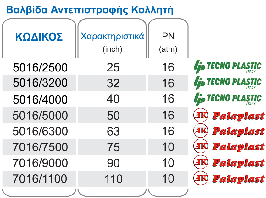 ΒΑΛΒΙΔΑ ΑΝΤΕΠΙΣΤΡΟΦΗΣ ΚΟΛΛΗΤΗ PVC